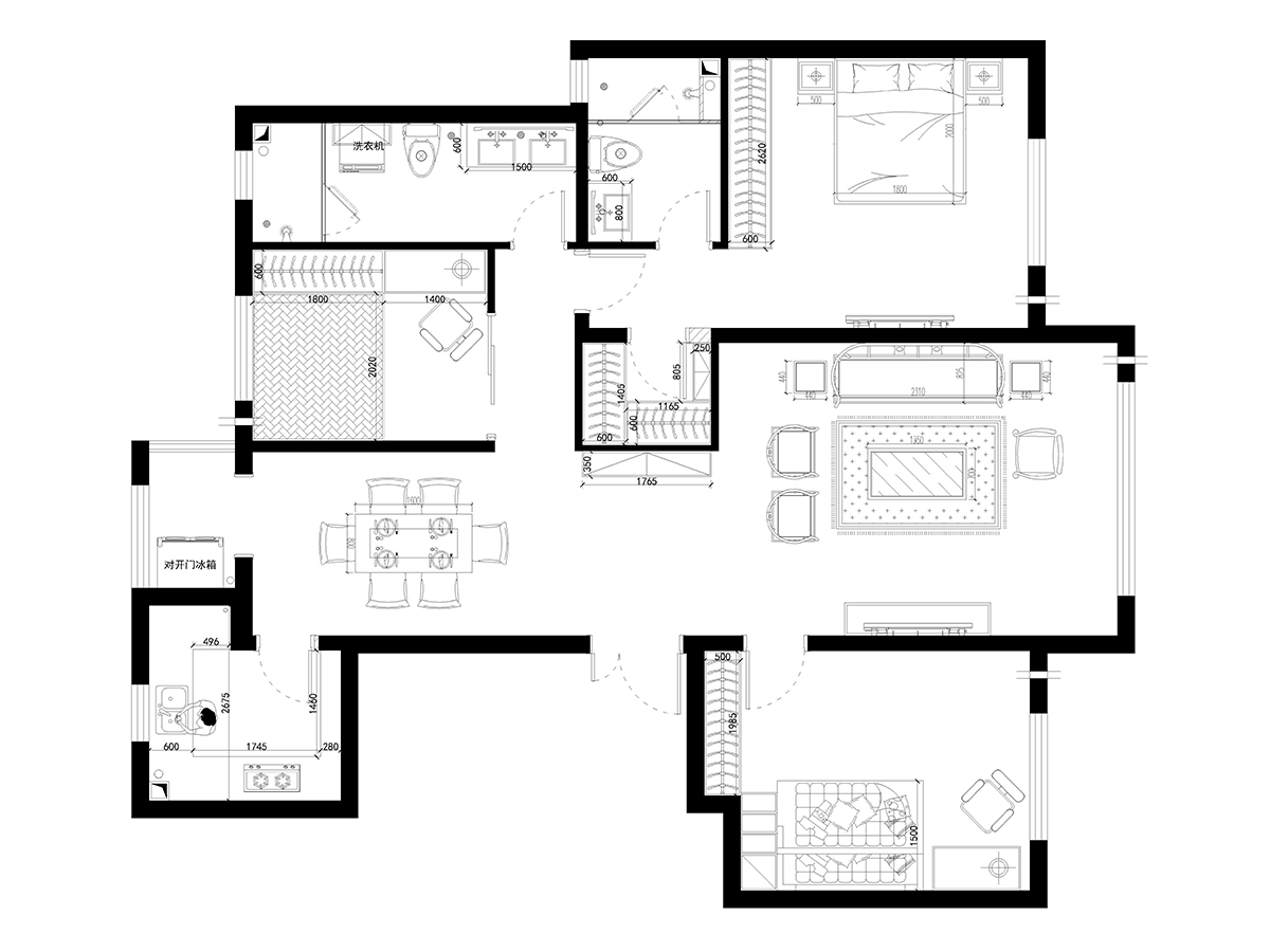 本案為中式古典,材質(zhì)與顏色的選用以和諧為原則、無累贅冗余造型,溫馨的手法,保留中式風(fēng)格所需要的必要的元素,在使用面積比例上推陳出新,結(jié)合配飾上力求指引居室的主人以輕松、愉快的狀態(tài)流連于居室營造的氣氛中。客餐廳十分淡雅,這里沒有多余的色彩、布置和家具,沒有喧囂與繁冗,一派寧靜悠遠(yuǎn);設(shè)計(jì)將原本不規(guī)則且略顯零亂的天花加以簡化整合;設(shè)計(jì)采用傳統(tǒng)的入戶玄關(guān)門廳把客廳與餐廳兩個空間加以適當(dāng)區(qū)分,形成一個隔而不斷,分而不離的互動空間,愜意的、時(shí)尚的、成功人士的品質(zhì)生活體驗(yàn)盡在其中。
