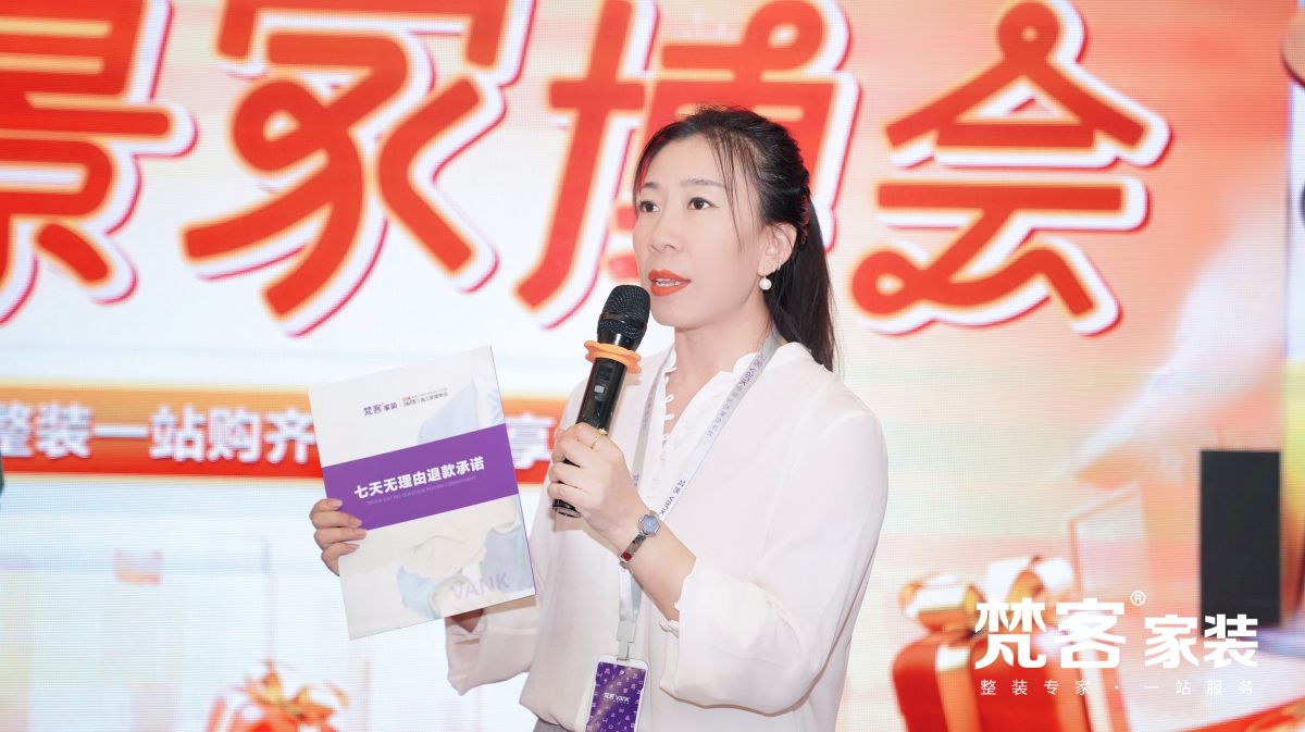 梵客集團副總裁、梵客家裝總經理任琳女士蒞臨活動現場,向業主朋友介紹此次活動的各項福利政策及優惠項目,只為助力京城百姓能把握金秋旺季、抓住特惠時機、裝好房,盡早實現筑家夢想。