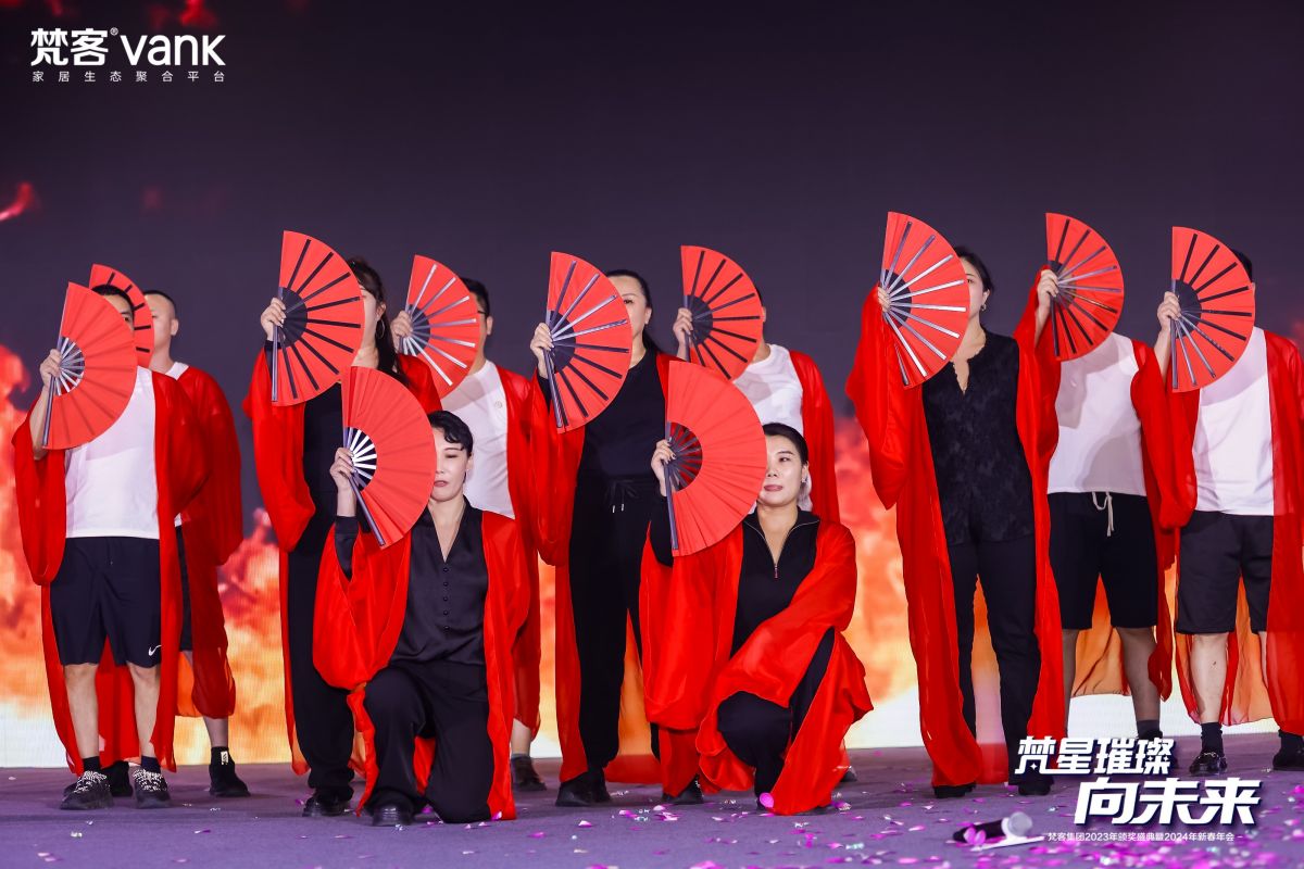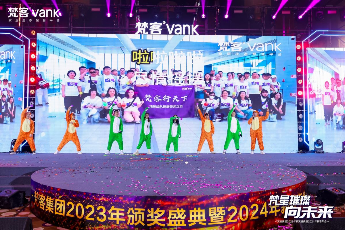 頒獎(jiǎng)間隙還進(jìn)行了團(tuán)隊(duì)風(fēng)采展示,來(lái)自梵客家裝營(yíng)銷(xiāo)中心、梵客家裝交付中心、吉筑裝飾、梵客微裝的小伙伴用激昂的斗志,體現(xiàn)了敢拼敢贏的精神。