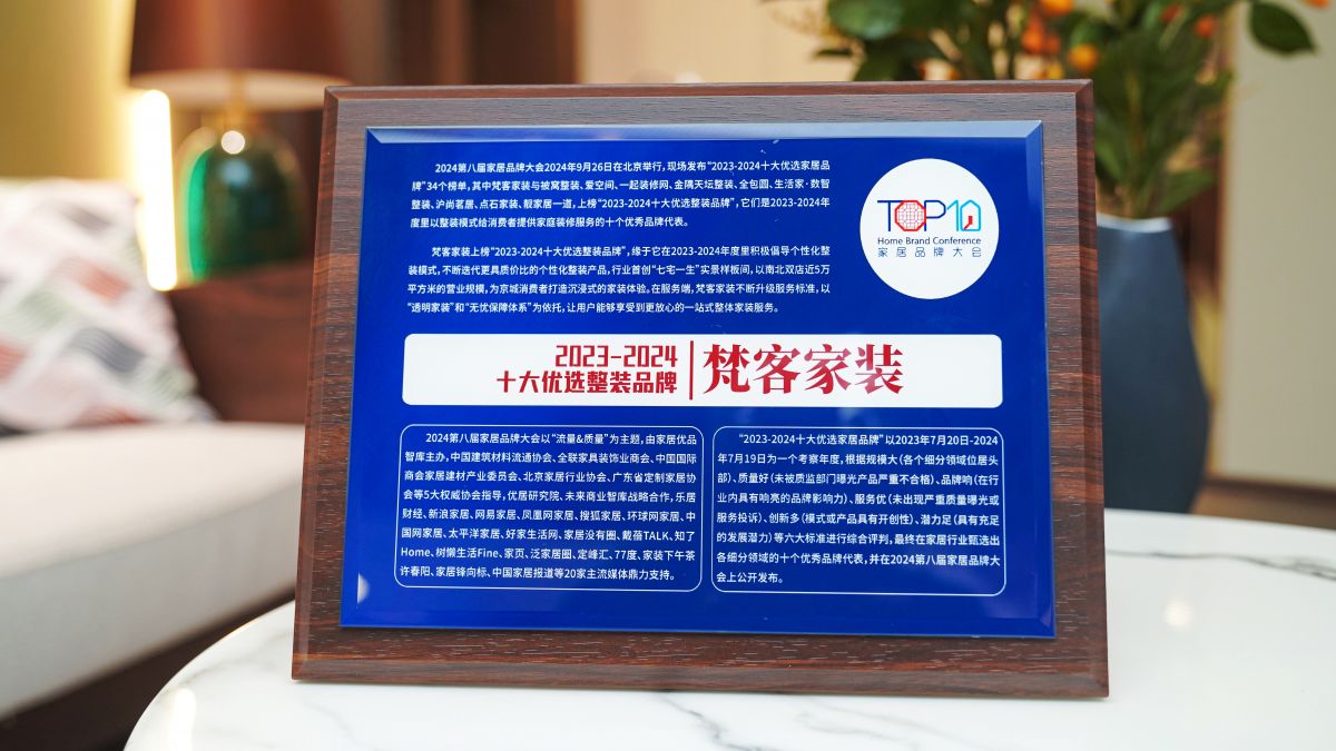 梵客家裝&梵客微裝獲“2023-2024十大優(yōu)選家居品牌”權(quán)威評定