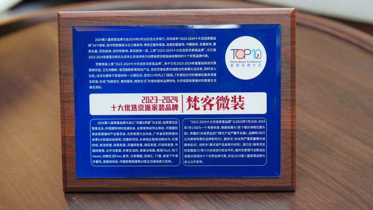 梵客微裝上榜“2023-2024十大優(yōu)選京派家裝品牌”,緣于它在2023-2024年度里陸續(xù)迭代其廚房改造、衛(wèi)生間翻新、墻頂面刷新等局改產(chǎn)品,依托梵客縱貫京城南北的規(guī)模大店優(yōu)勢,同時深入社區(qū),試點化服務于家庭快修一公里區(qū)間,堅持2小時內(nèi)上門勘驗,7天落地交付的精細化服務流程及標準,形成“快速成交、高效服務、精致生活”的局改服務品牌特色,為京城百姓更美好的家居生活增光添彩。