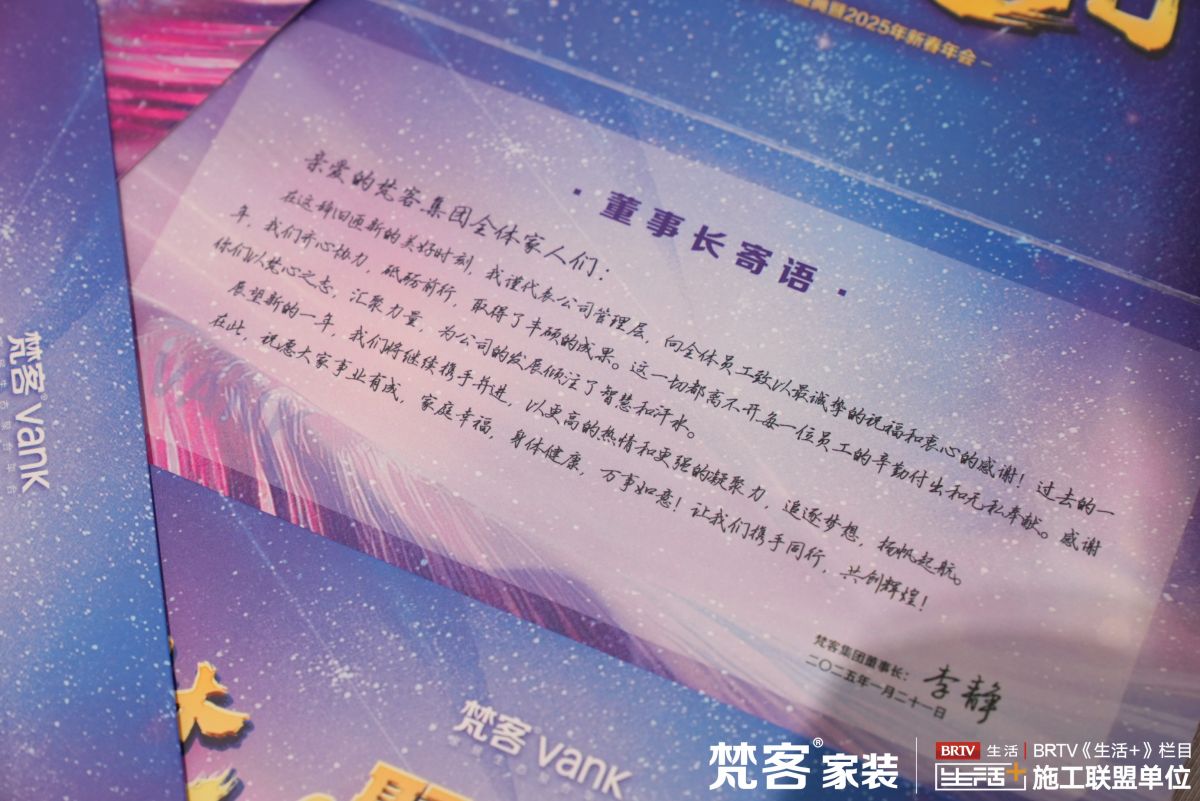 其中還有一封來自梵客集團董事長李靜先生的書信寄語:“過去的一年,我們齊心協力、砥礪前行,取得了豐碩的成果。這一切都離不開每位員工的辛勤付出和無私奉獻。感謝你們以梵心之志匯聚力量...展望新的一年,我們將繼續攜手并進,以更高的熱情和更強的凝聚力追逐夢想,揚帆起航…”