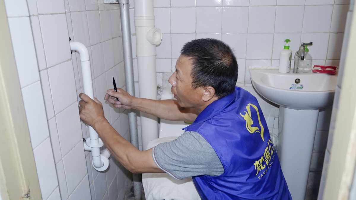 另一位老人是中國人民志愿軍二十三軍七十三師抗美援朝元老的家屬。他們家生活空間狹小,特別是洗手間,因為年邁及腿腳不便,馬桶坐起時非常吃力。志愿團為老人的洗手間安裝了固定在墻上的L型扶手,坐下起身時都能借助到力,大大提高了老人如廁的安全度及方便度。