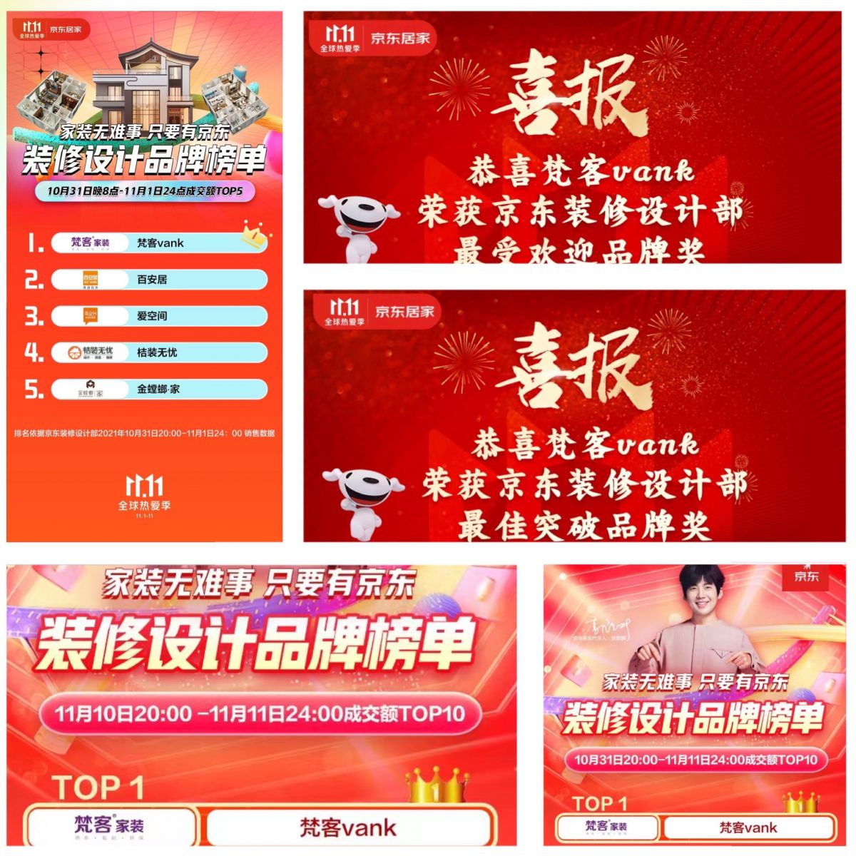 在去年京東11.11全球熱愛季,梵客家裝更是殊榮卓著,穩拿首日開門紅熱賣榜,11.1-11.11期間熱賣榜,11.11全天熱賣榜三個NO.1;喜獲京東裝修設計部最受歡迎品牌獎和最佳突圍品牌獎兩大獎項;登頂京東裝修設計品牌榜單,并實現在京城業績連年翻倍增長!此外,梵客家裝還與眾多大牌同時榮登品牌龍虎榜單TOP10,成為家裝行業唯一上榜品牌。