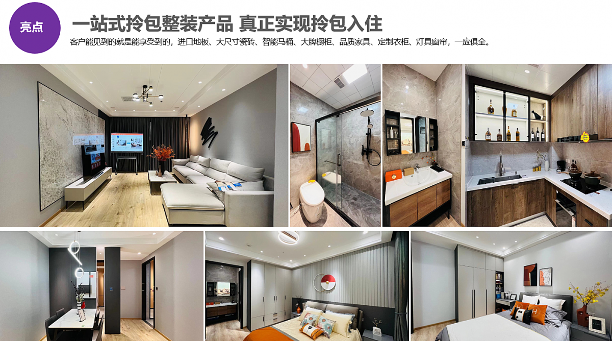該整裝產品標配了8大國際品牌輔材、8大品類尊享級高檔主材、12大德標工程工藝、18大全包工程增配、20項人性化配置。同時配贈全屋9大智能家居產品、全屋5大舒適家居系統、全屋定制家具收納系統、全屋15件成品家具、全屋窗簾、全屋燈具、全屋6大尊享級專屬工藝、全屋入住環保檢測等,獲得用戶的一致認可,讓裝修更省心、更省錢、更環保。