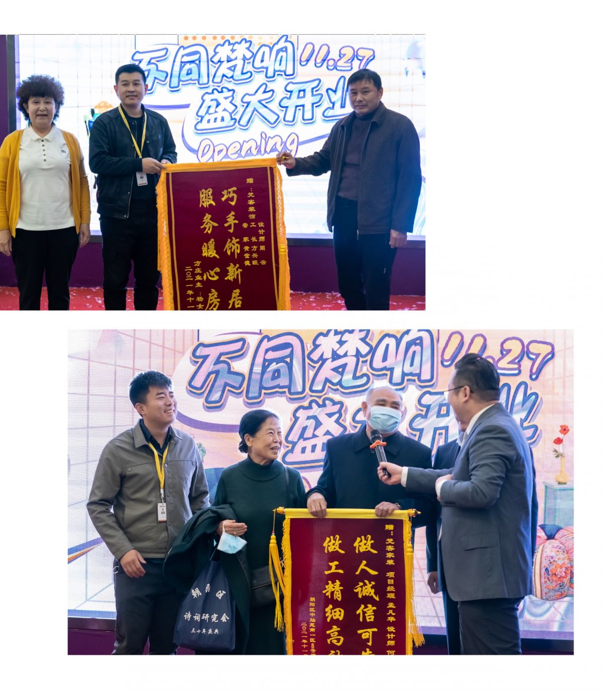 梵客家裝14周年慶典,兩位老人親手將錦旗送到梵客集團董事長李靜先生手中,感慨萬分:“裝修時也考察了三家公司,但最終選擇了梵客,因為靠譜,我們對裝修效果非常滿意!”