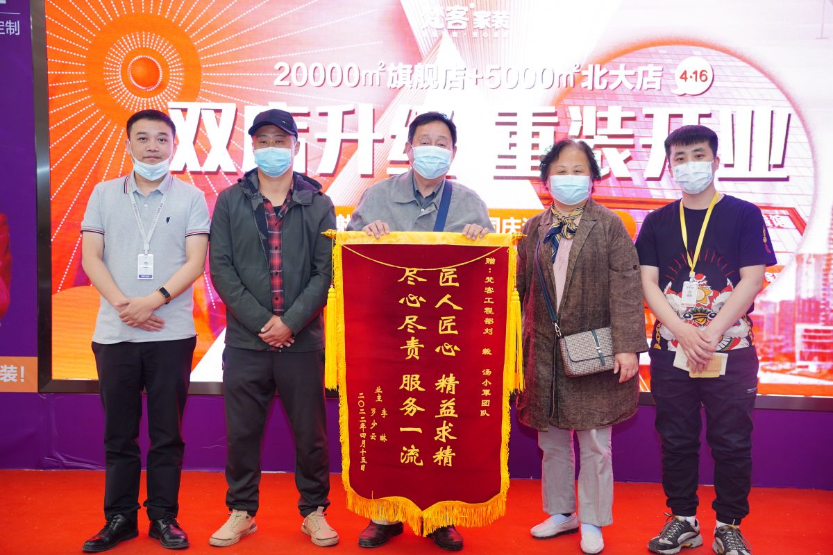 “裝修的新家細致完美,錦旗一個送梵客,一個送工長,代表家裝服務有保障,工地施工有保障。”