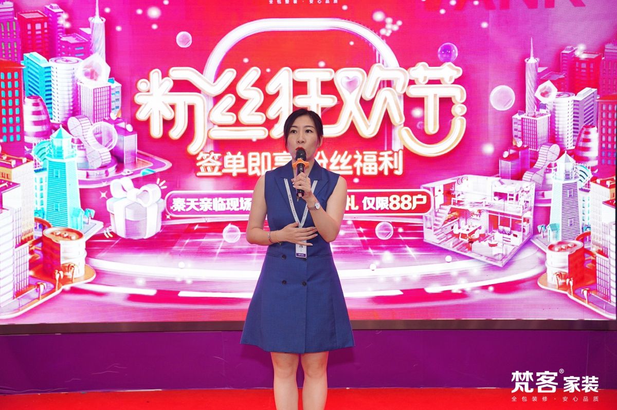 “…希望所有到場的業主朋友在今天能有好的收獲,也希望梵客家裝的小伙伴為大家帶來專業、權威、周到的服務,讓業主安心、放心、省心,最后把完美的新家交到業主手中…正逢粉絲節,我們也會拿出最優惠的福利給業主朋友,祝大家裝修愉快!”
