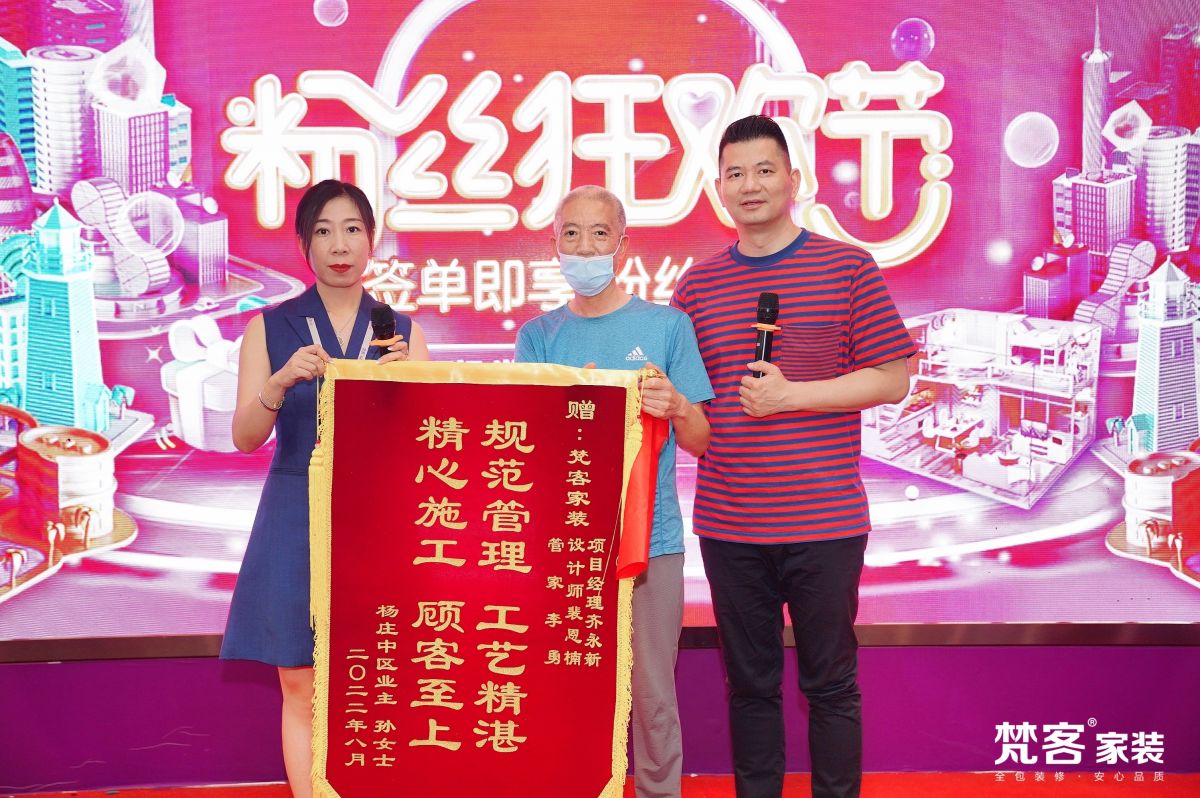金獎銀獎不如老百姓的夸獎,活動現場,有幾位已經裝修好的業主朋友,專門帶著錦旗來梵客表達感謝之情,娓娓道來和梵客從相識到相知的整個過程,此情此景,令人感慨萬分。