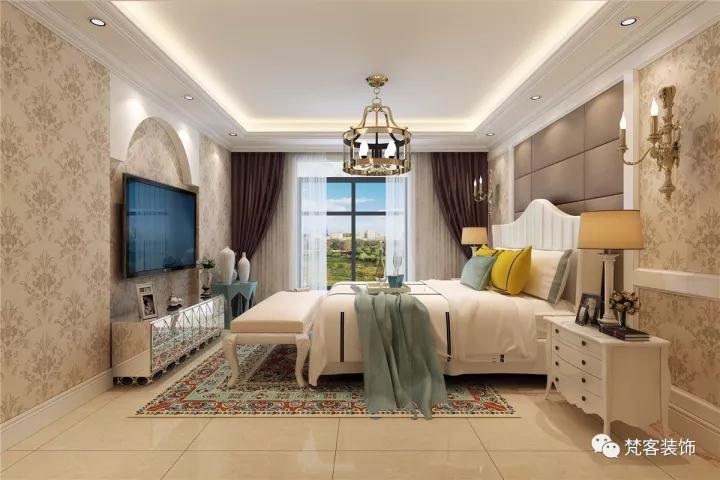 臥室鋪設地毯,但地毯和地面色差不宜太大,選擇大面積的歐式花紋地毯,主要是裝飾地面,提升舒適性。